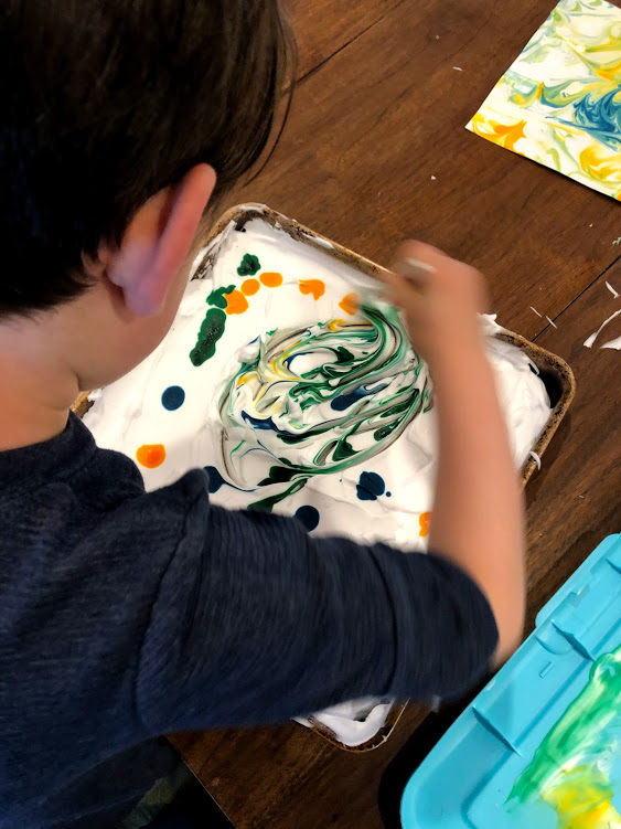 Swirl colors around in shaving cream.